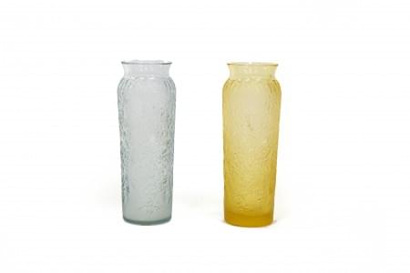 L'un blanc et l'autre jaune, verre moulé-pressé à décor de fleur...