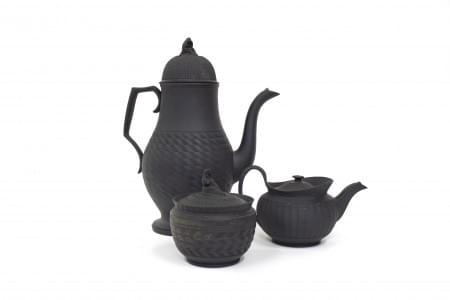 Wedgwood, black basalt, H 11 cm. On joint une cafetière et un co...