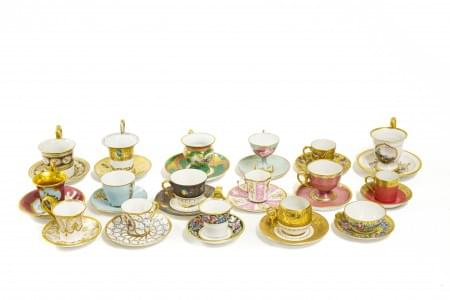 3386. Collection de 15 tasses ornées de différents décors