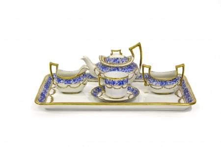 Porcelaine peinte, D. Brandt, comprenant: plateau, théière, sucr...