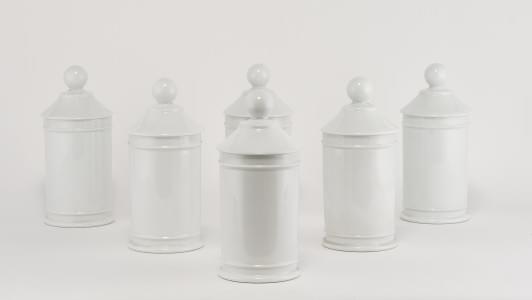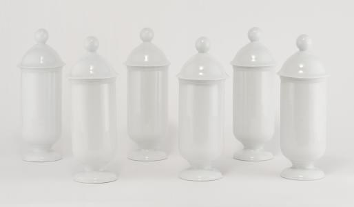 3393. Suite de 6 pots couverts cylindriques à prise boule