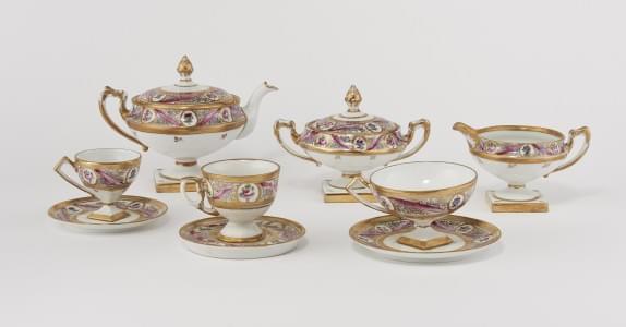 3396. Service à motif de rubans, guirlandes et médaillons fleuris