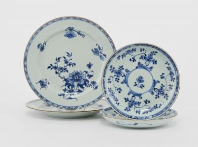 621. Deux plats et deux assiettes, Chine, Compagnie des Indes, XVIIIe...