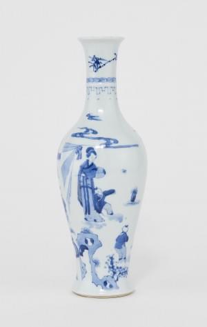 Porcelaine émaillée bleu blanc à décor de personnages, H 25,5 cm
