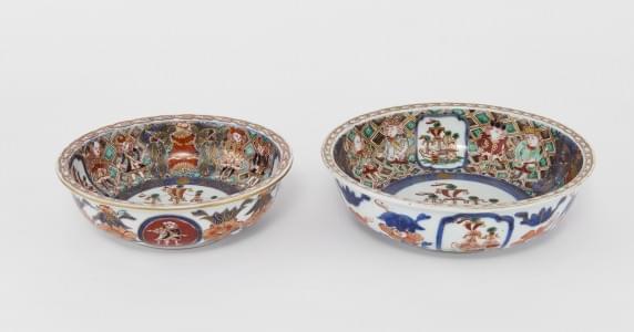 635. Deux coupes black ship, Imari, Japon, XIXe s
