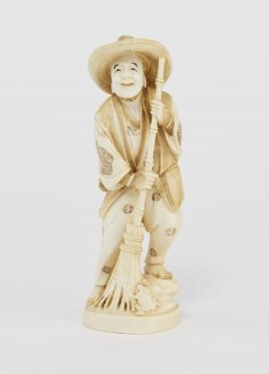 673. Okimono figurant un homme au balai, Japon, XIXe s