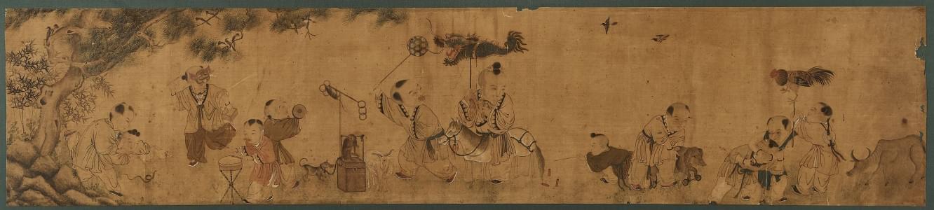 Les douze signes du Zodiaque, encre et gouache sur soie, 34x152...