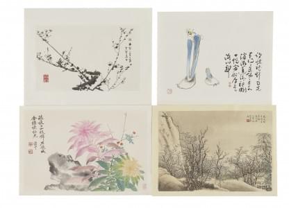 Sujets divers, en feuilles, dont Qi Baishi, etc, env. 40x34 cm