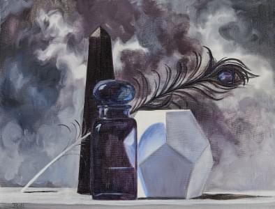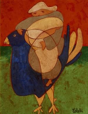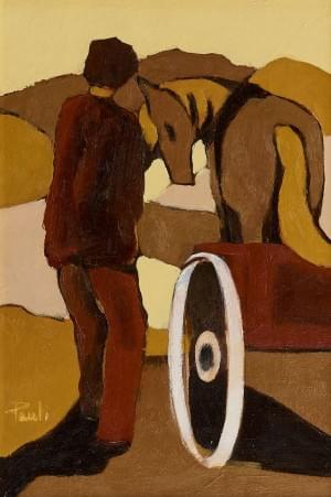 Monture bleue, huile sur toile, signée, 35x26 cm