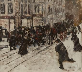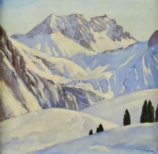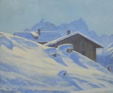 Valbellahorn sous la neige, Arosa, huile sur toile, signée, 43x4...