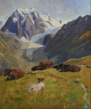 Vaches à l'alpage de Praz Gras, Mont Collon, Val d'Hérens, huile...