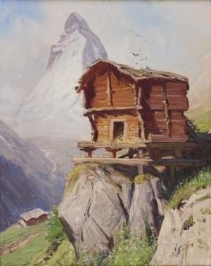 Le Cervin depuis Findelen, Zermatt, huile sur toile, signée, 50x...