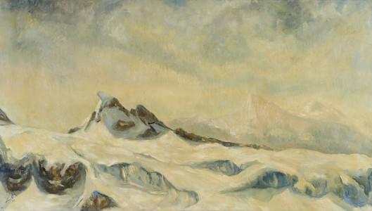 Cimes enneigées, huile sur toile, signée et datée 30, 80x140 cm