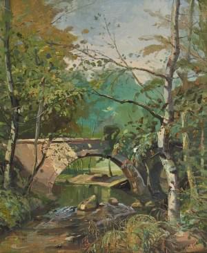 Le pont du Nignolet sur le Boiron à Nyon, huile sur toile signée...