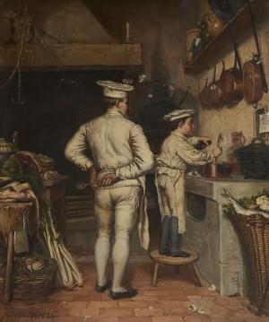 Les cuisiniers, huile sur toile, signée, 45x37 cm