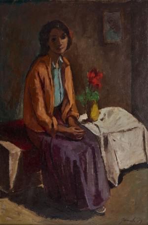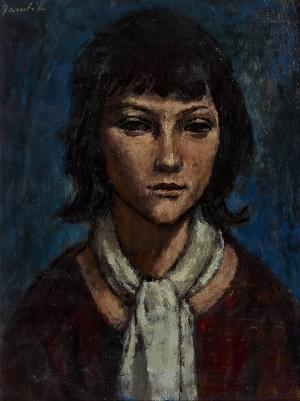 Jeune fille au foulard, huile sur panneau, signée et datée 1964,...