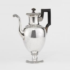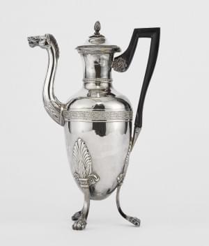 340. Cafetière néoclassique sur piédouche à bec verseur tête de léopa...