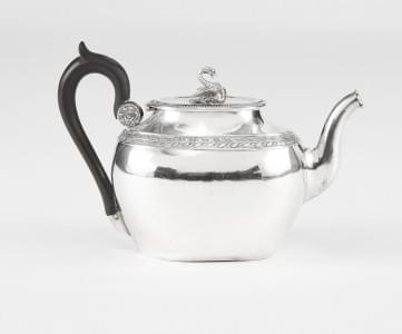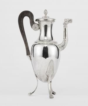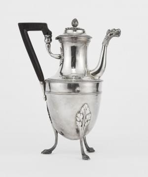 337. Cafetière tripode d'époque Empire à bec verseur tête de cheval