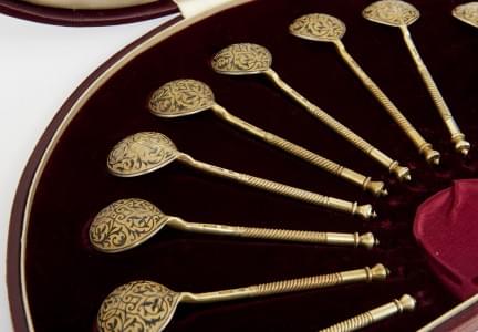 350. Suite de 12 cuillères à thé à décor niellé de rinceaux