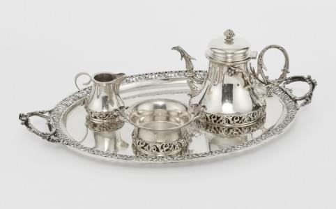 371. Service à thé Belle Epoque à motif ajouré de rinceaux,