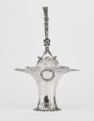 372. Corbeille en forme de panier à anse et à bordure ajourée de rinc...