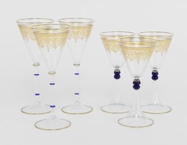 380. Suite de 6 verres à vin rouge et 6 à vin blanc à motif de volute...