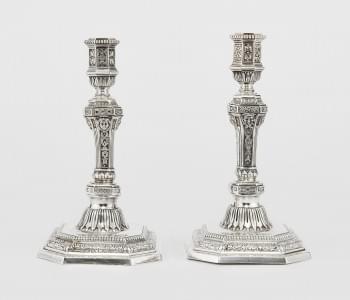 387. Paire de candélabres de style Louis XVI à deux feux,