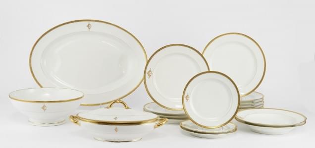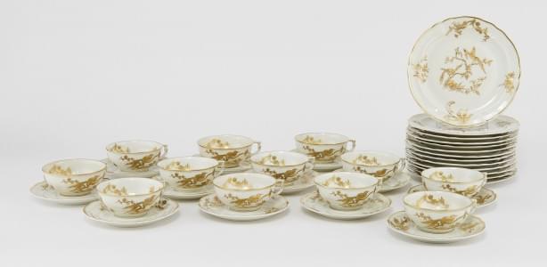 394. Service à décor de branches et oiseaux or sur fond crème, modèle...