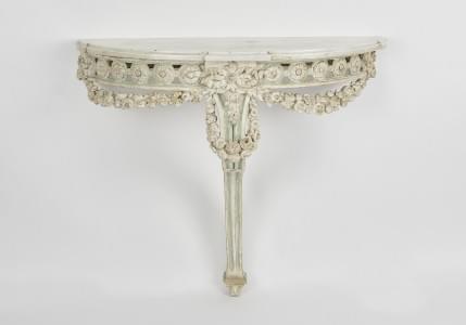 Bois sculpté et doré, marbre blanc, 90x135x50 cm