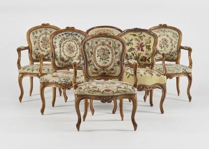 581. Suite de quatre et deux fauteuils, Suisse, fin XVIIIe s