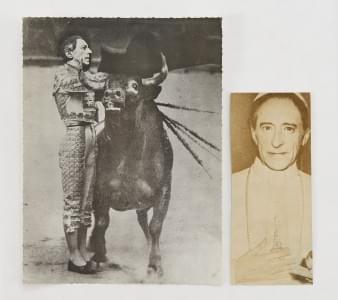 Deux photo-montages de Cocteau en pape et en matador,17x7 et 24x...