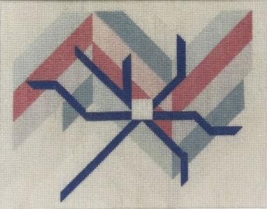 Composition géométrique, broderie au point de croix serré, 20x26...