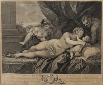 Venus, Cupidon et Satyre, eau-forte, 40x48 cm