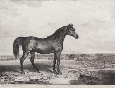 Paire de portraits de chevaux, estampe, 36x46 cm. Lot vendu au p...