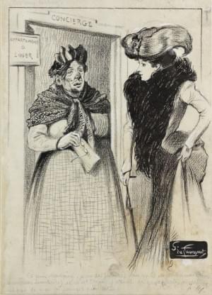 La concierge, estampe, 31x23 cm. Lot vendu au profit de l'associ...