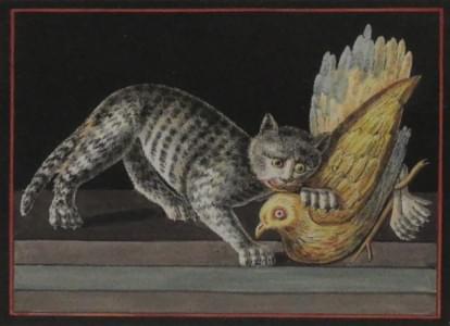 Le chat gourmand, lithographie aquarellée et gouachée, 17x21,5 c...