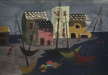 Village de pêcheurs, gouache sur papier, 43x60 cm