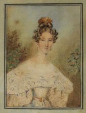 Portrait de femme à la mode de 1830, aquarelle, circa 1900, 12x1...