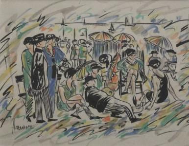 Scène de plage, gouache et encre sur papier, 23x29 cm. Provenanc...