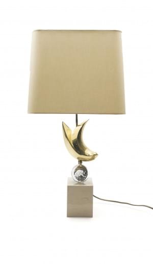 Sculpture montée lampe, numérotée 23/300, verre laiton marbre, H...