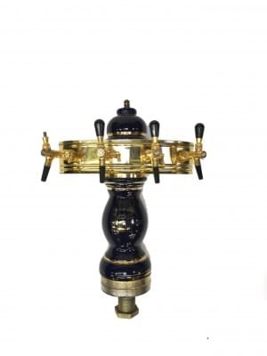 Quatre robinets, métal et corps en porcelaine bleu nuit, H 61 cm