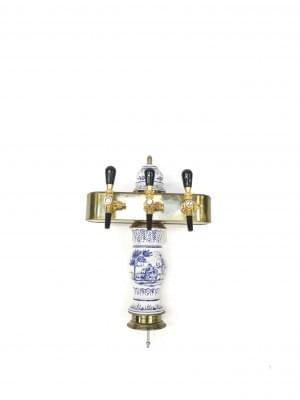 Un robinet, métal et corps en porcelaine bleue, H 29 cm