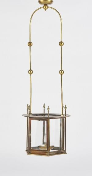 Laiton et verre, H 120 cm. Provenance: collection baronne Marion...