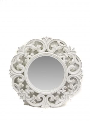 Bois sculpté et peint gris à bordure de ruban et perlettes, glac...