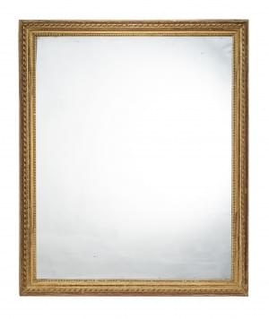 Bois sculpté et redoré, glace au mercure, 65x45 . Provenance: co...