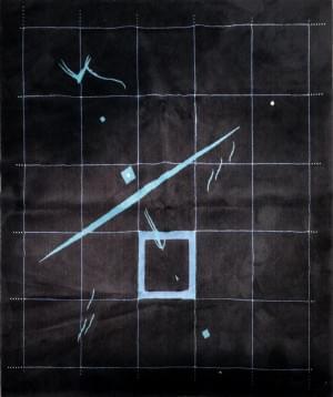 A décor abstrait turquoise sur fond noir, 190x200 cm. Provenance...