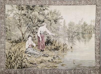 Jeunes filles au bord de la rivière, tapisserie, probablement un...