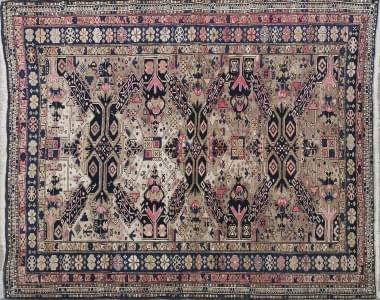 A décor d'un médaillon hexagonal sur fond bleu nuit, 218x112 cm....