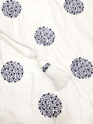 Soie brodée de médaillons feuillagés bleus, 270x80 cm. Provenanc...