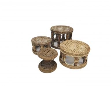 Bois laqué crème, tissu de style indienne